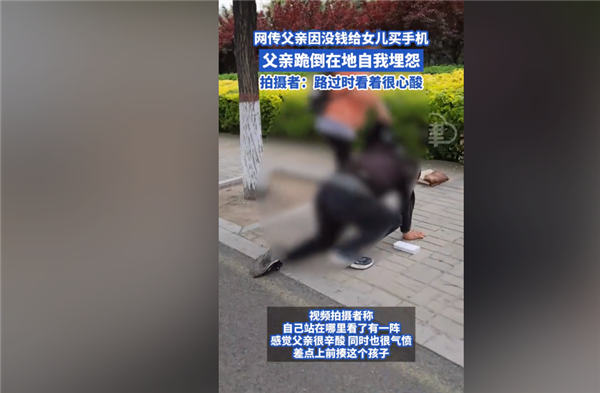 5月6日消息,近日,有网友发视频称一女孩让父亲给自己买苹果手机,父亲因没钱跪地自我埋怨。