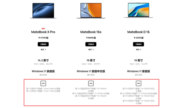 其中手机还好,用不了高通华为这会儿还有麒麟可以用,但是电脑不一样,在华为官网我们可以看到,这些年它推出的消费级 PC,不管是笔记本电脑还是台式机,基本用的都是英特尔芯片: